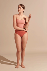 This squared neckline bathing suit is an easy choice for those who are looking for a timeless piece to wear for years. With an added seam in the middle, it emphasise the waistline, tailored to a perfect fit. Medium leg-cut and optimal coverage for an elongated silhouette. .