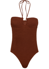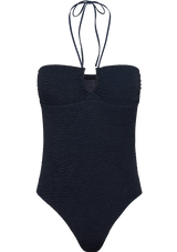 Introducing the newest addition to our timeless collection. Crafted from crinkled fabric, this bathing suit boasts a lined front and single-layered back for maximal comfort. With a unique combination of textures, the wrinkled and smooth fabrics offer an impeccable design and comfortable fit. The medium leg-cut and optimal coverage create an elongated silhouette. Wear it tied behind the neck or as a strapless piece for versatility.
