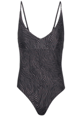 One of our favourite pieces, this elegant and timeless swimsuit has a deep V-neck, low-cut back and a slightly medium leg-cut, allowing for an elongated and feminine silhouette. An elastic under-bust band provides proper support for different bust sizes and thin adjustable bands can be worn straight or crossed at the back. This swimsuit is seamless at the front and made of double layered fabric, giving the swimsuit an excellent shape retention.